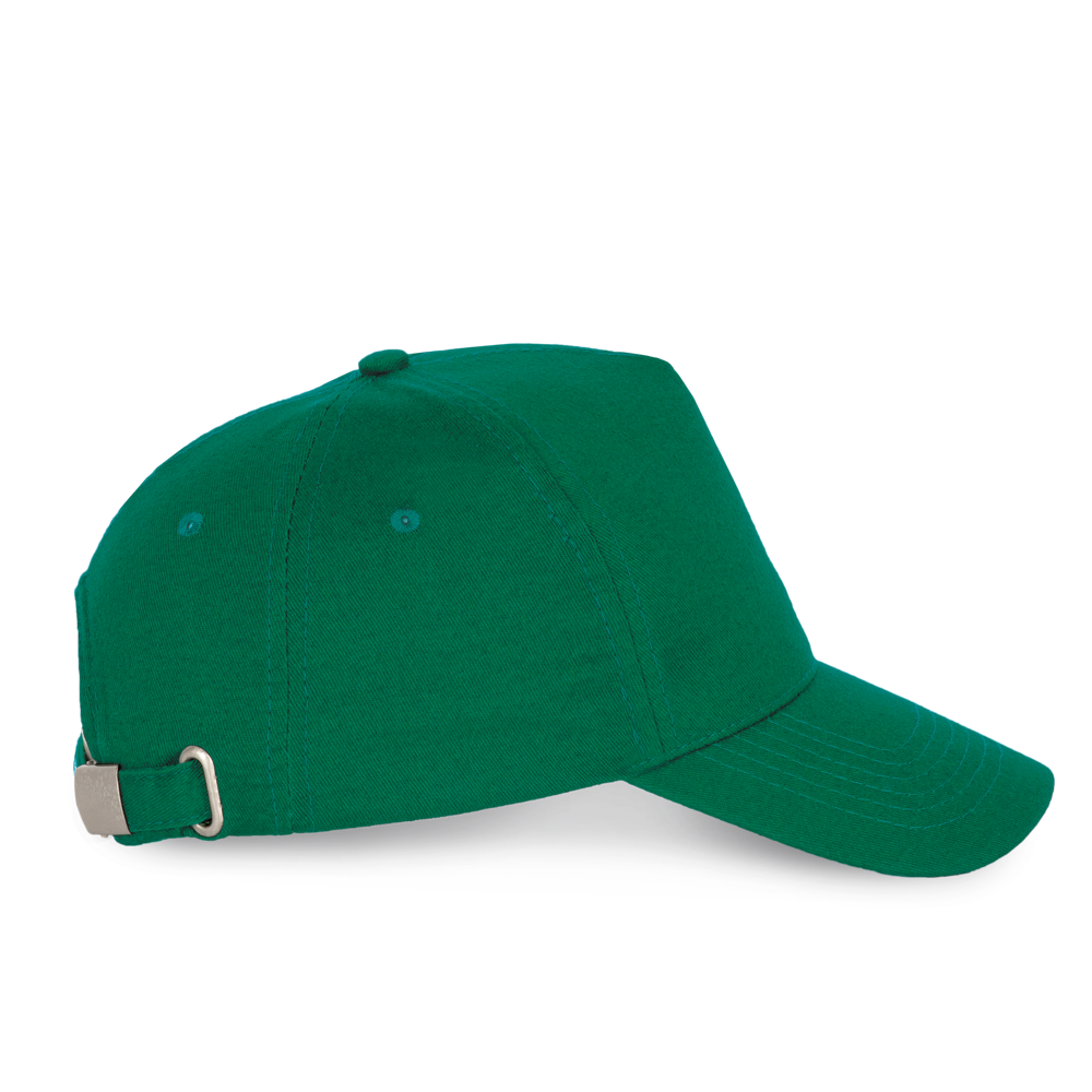 100% gebürstetes Baumwolltwill. Schirm verstärkt und vorgeformt. Verstellbar durch Metallclip hinten.