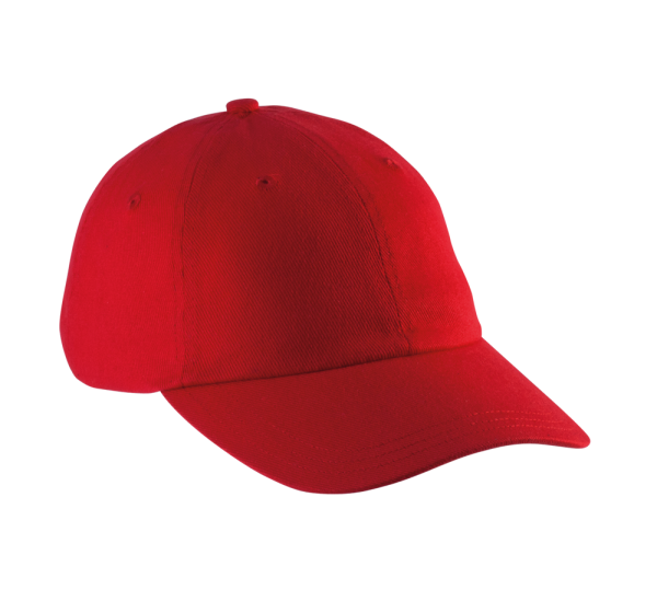 100 % dicker, gebürsteter Baumwollserge. 6 Panels. Tief sitzender Schirm. Verschluss mit Metallschnalle hinten.