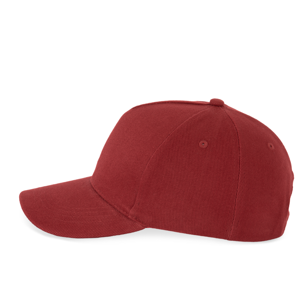 100 % Baumwolle. Dicke, gekämmte Baumwolle. 5-Panel-Cap. Verschluss mit Metallschnalle hinten.
