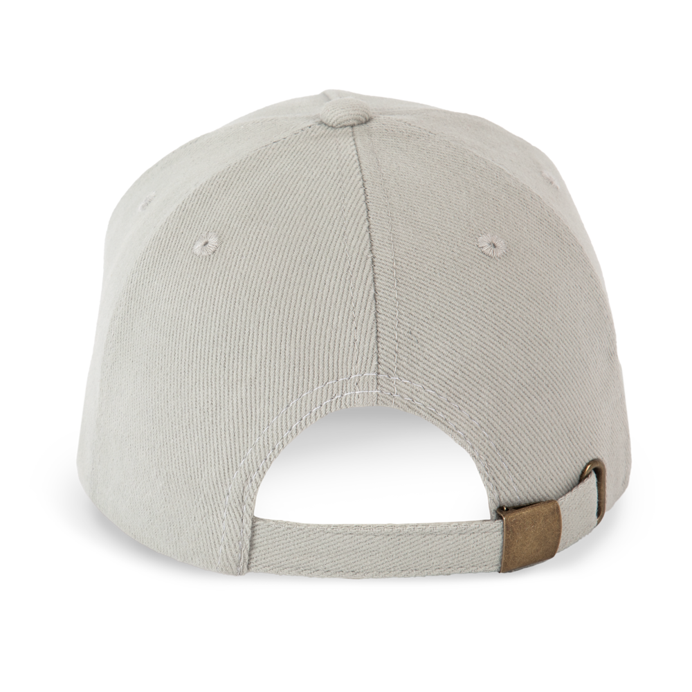 100 % Baumwolle. Dicke, gekämmte Baumwolle. 5-Panel-Cap. Verschluss mit Metallschnalle hinten.