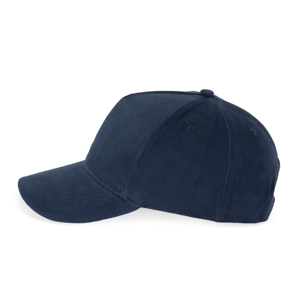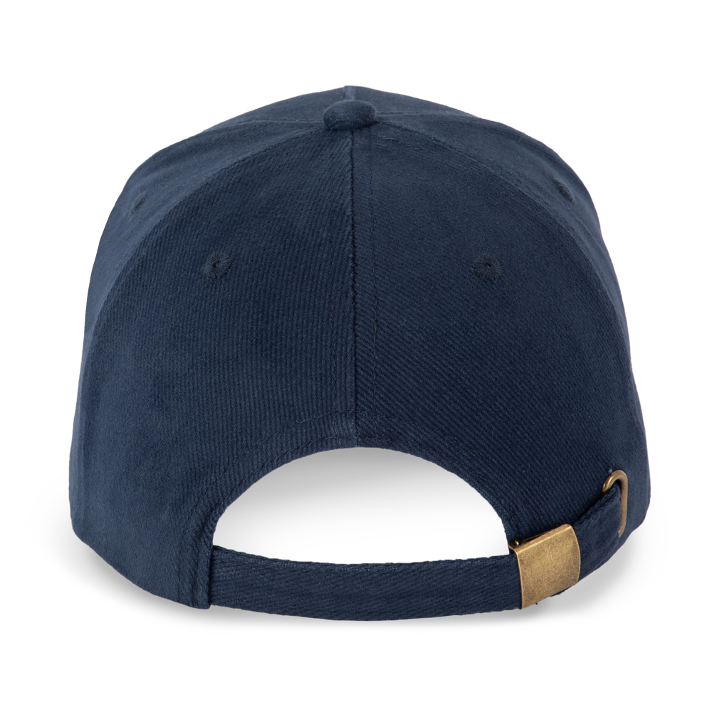 100 % Baumwolle. Dicke, gekämmte Baumwolle. 5-Panel-Cap. Verschluss mit Metallschnalle hinten.