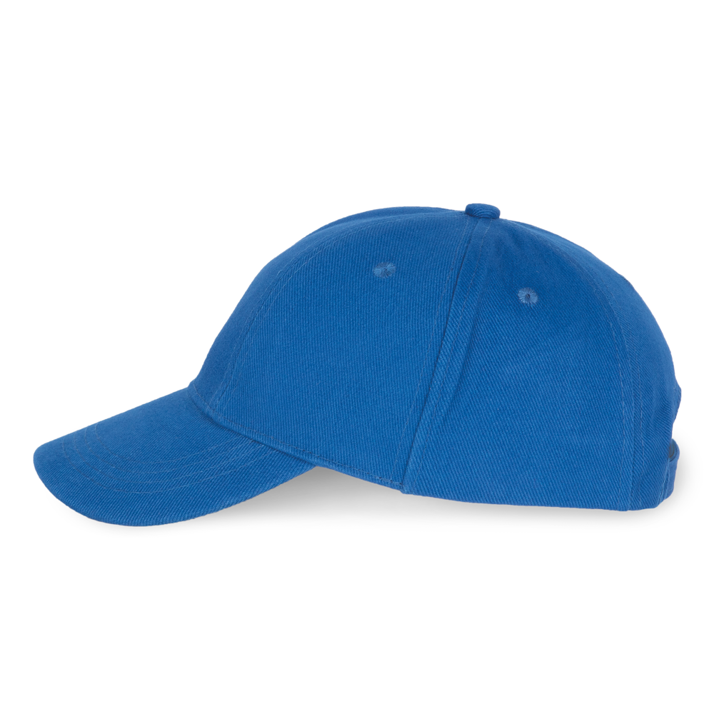 100% grob gebürstetes Baumwolltwill. 6-Panel. Leicht zu bedruckender Schirm. Größenverstellbar durch Metallschnalle.