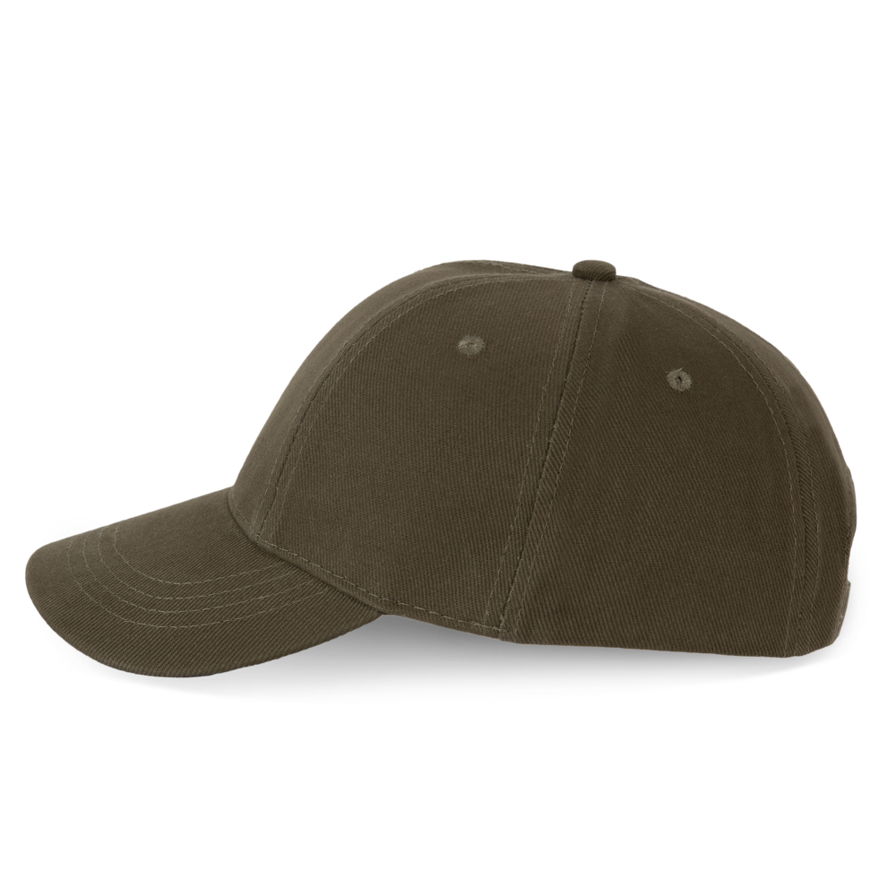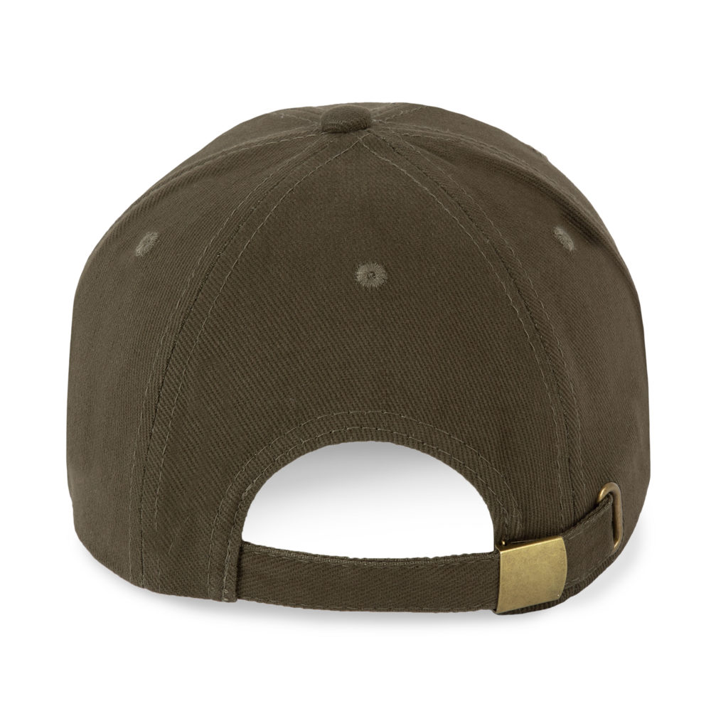 100% grob gebürstetes Baumwolltwill. 6-Panel. Leicht zu bedruckender Schirm. Größenverstellbar durch Metallschnalle.