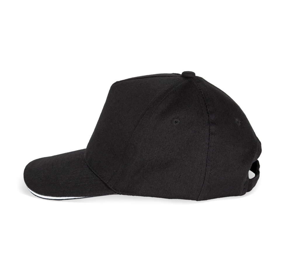 100 % gebürsteter Baumwollserge. 5 Panels. Sandwichschirm in Kontrastfarbe. Weitenverstellbar durch Metallschnalle hinten. Kopfumfang: 53 cm.