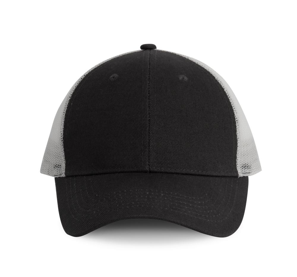 100% coton / 100% Polyester. 6-Panel-Trucker-Kappe.Die Frontpanels und der Sonnenschutz-Visor sind aus Baumwolle gefertigt, das Mesh-Teil aus Polyester.Mit verstellbarer Kunststofflasche.