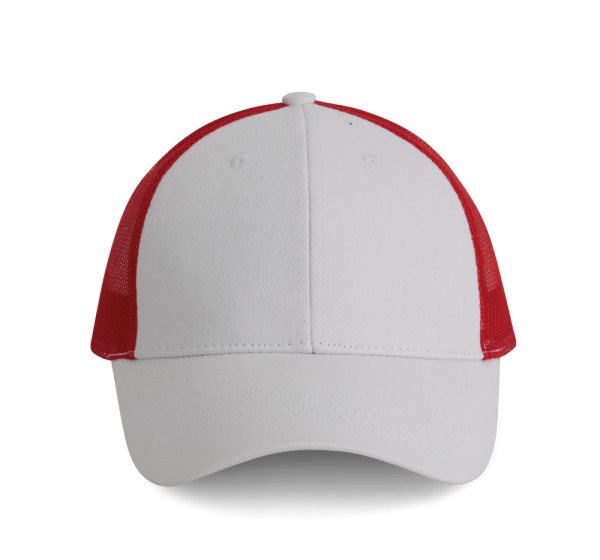 100% coton / 100% Polyester. 6-Panel-Trucker-Kappe.Die Frontpanels und der Sonnenschutz-Visor sind aus Baumwolle gefertigt, das Mesh-Teil aus Polyester.Mit verstellbarer Kunststofflasche.