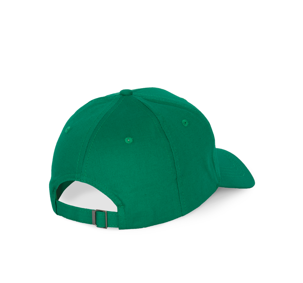 100 % Baumwolle. 6-Panel-Kappe. Über eine Metallschnalle verstellbarer Verschluss mit Schlaufe mit automatischer Blockierung.