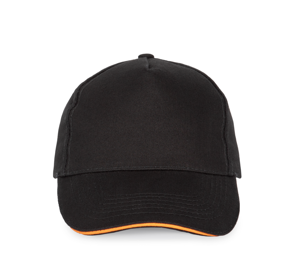 100% stark gebürstete Baumwolle. Laminierte 5-Panel-Kappe. Sandwichschirms mit kontrastfarbenem Mittelstück. Baumwoll-Schweißband. Größenverstellbar durch Metallschnalle.