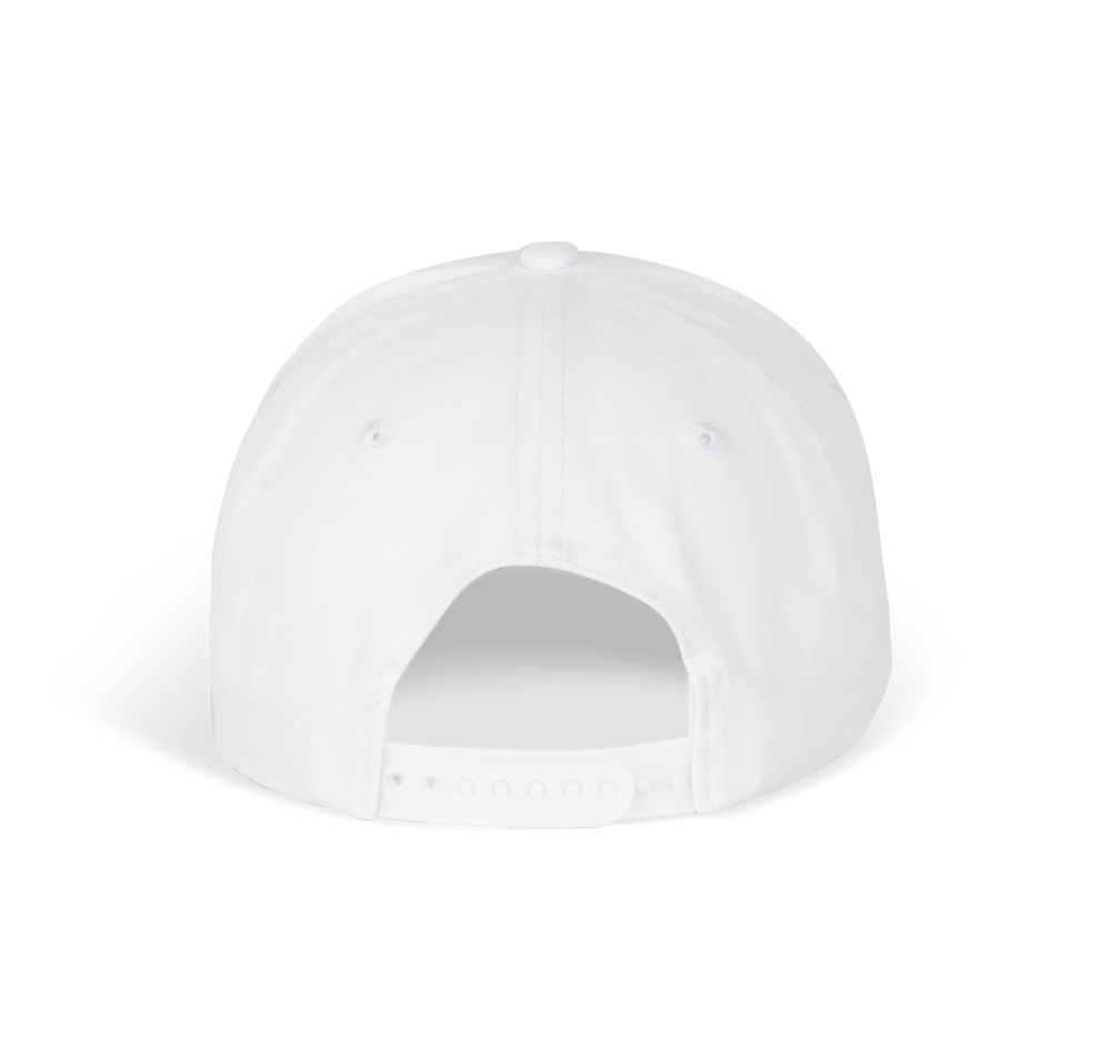 100 % Baumwollserge. 5 Panel-Kappe. Flacher Schirm. Kunststoffschnalle zur Weitenregulierung.