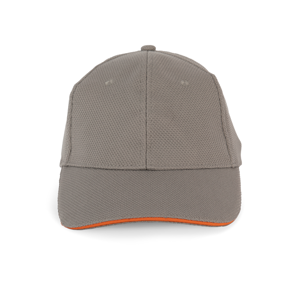 100% Polyester-Piqué. 6 Panels. Lüftungsösen. Zwischenstück in Kontrastfarbe. Stirnband innen gepolstert für optimalen Tragekomfort. Verstellbarer Klettverschluss.