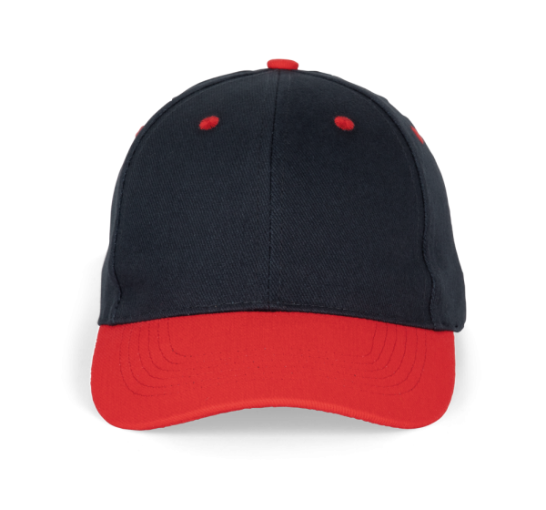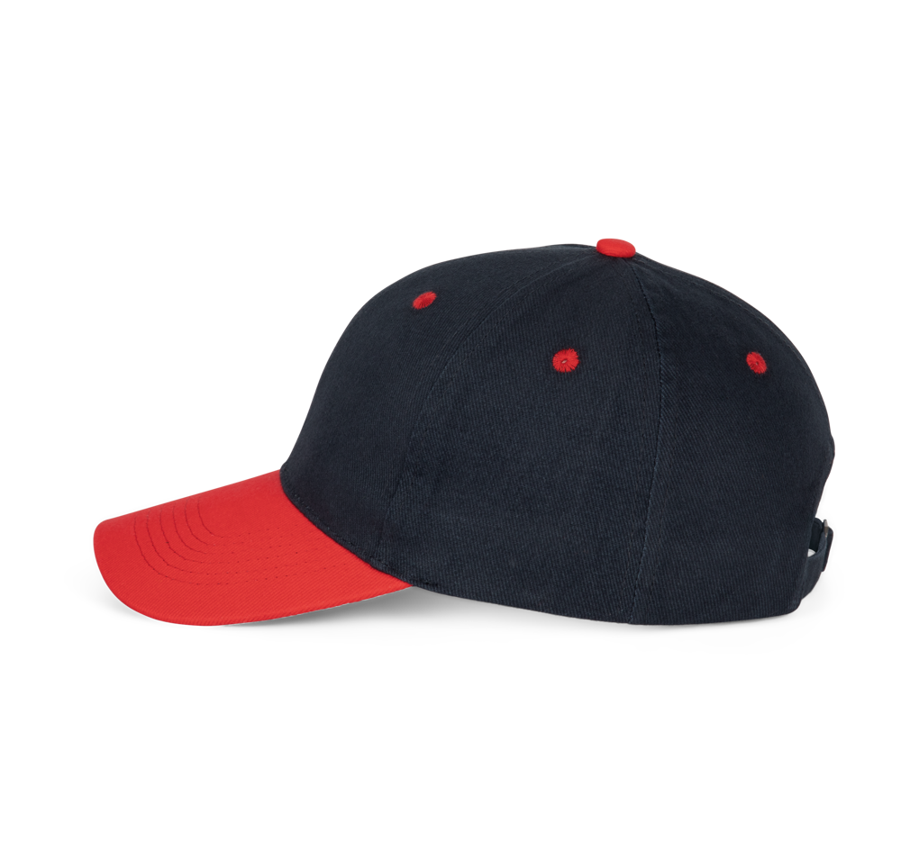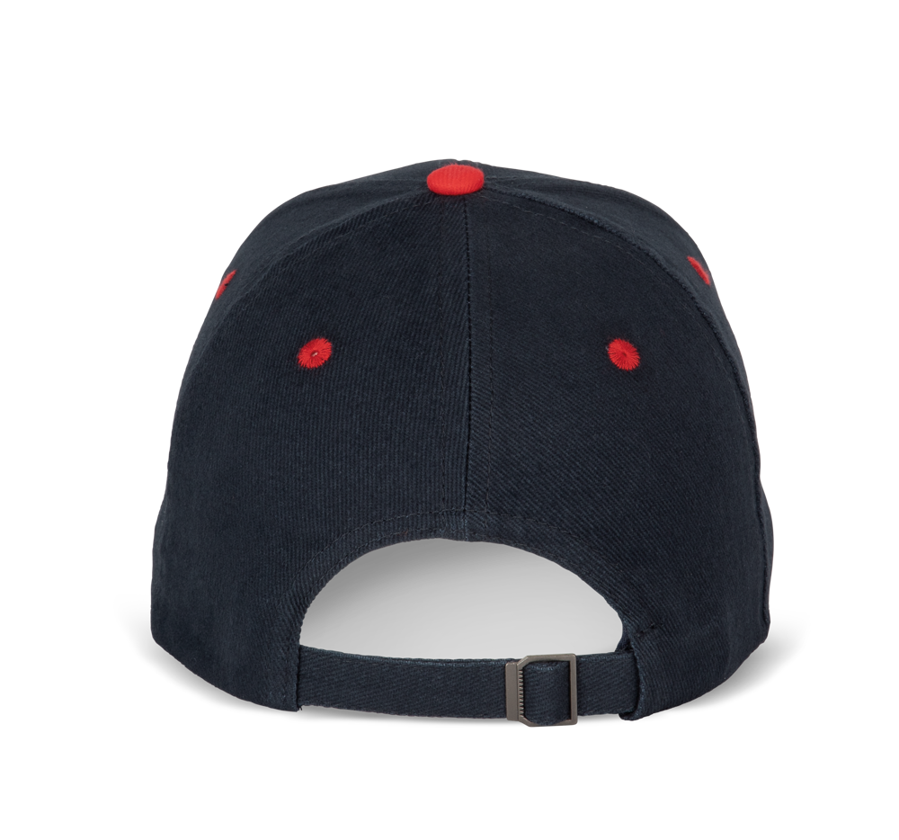 100 % Baumwolle. 6-Panel-Kappe. Über eine Metallschnalle verstellbarer Verschluss mit Schlaufe mit automatischer Bockierung.