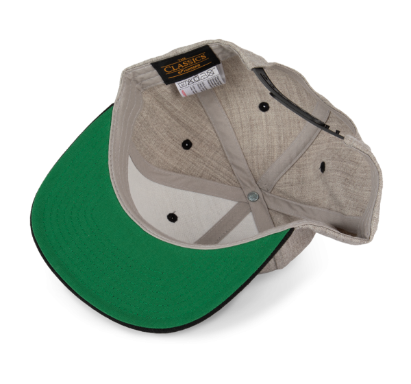 80 % Acryl / 20 % Wolle. 6 Felder. Klassisches Modell, erstklassige Qualität. Flacher Schirm, hohes Profil, vordere Felder versteift. Schirmunterseite in kontrastfarbenem Grün. Kunststoffriegel zur Weitenregulierung.