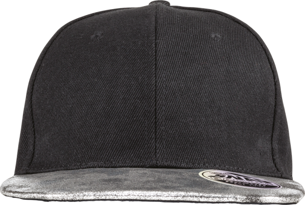 100 % Acryl-Serge. 6-Panel-Snapback-Kappe. Kontrastfarbener, flacher Schirm aus recycletem PU mit Perlmutteffekt. Gestickte Ösen. Verstärkte Frontpanel. Snapback-Lasche zur Weiteregulierung. Abtrennbares Etikett. Geeignet für Stick und Transferdruck.