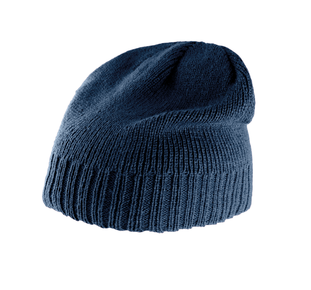 100% Acryl. Strickmütze. Rand in grobem Rippstrick.