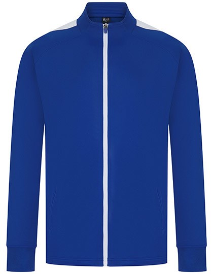 Sportanzugjacke aus Strickgewebe mit kontrastfarbenen äußeren Ärmeleinsätzen | Kontrastfarbener Front-Reißverschluss | Seitliche Taschen mit Reißverschluss | Trichterkragen und Elastische 1x1 Bündchen | Feststellschieber an allen Reißverschlüssen