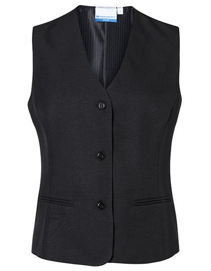 Leinwandgewebe, 170 g/m² (Oberstoff), 90 g/m² (Futterstoff) | Damenweste in lockerer Passform | Wiener Nähte | 2 seitliche Paspeltaschen | 1 Innentasche | Drei Knöpfe | Waschbar bis 30°C