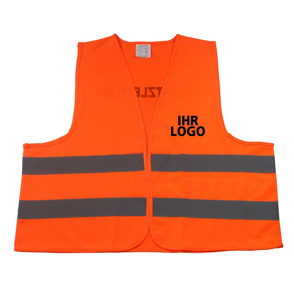 Unsere Warnweste Premium gelb ist aus 100% Polyester, wird nach EN ISO 20471 produziert und ist TÜV-Rheinland geprüft. Mit Anleitung einzeln im wiederverschließbaren Polybeutel verpackt. Durch die beiden Klettverschlüsse ist die Größe variabel einstellbar. Mit zwei reflektierenden Streifen, perfekt vernähte Qualität und Einleger in sieben Sprachen mit den gesetzlichen Pflichtangaben. Mit dem Standardmotiv 'Einsatzleitung' auf der Rückseite 1farbig schwarz bedruckt. Ein zusätzlicher Druck auf der Vorderseite ist möglich. Gern erstellen wir Ihnen dazu ein Angebot.