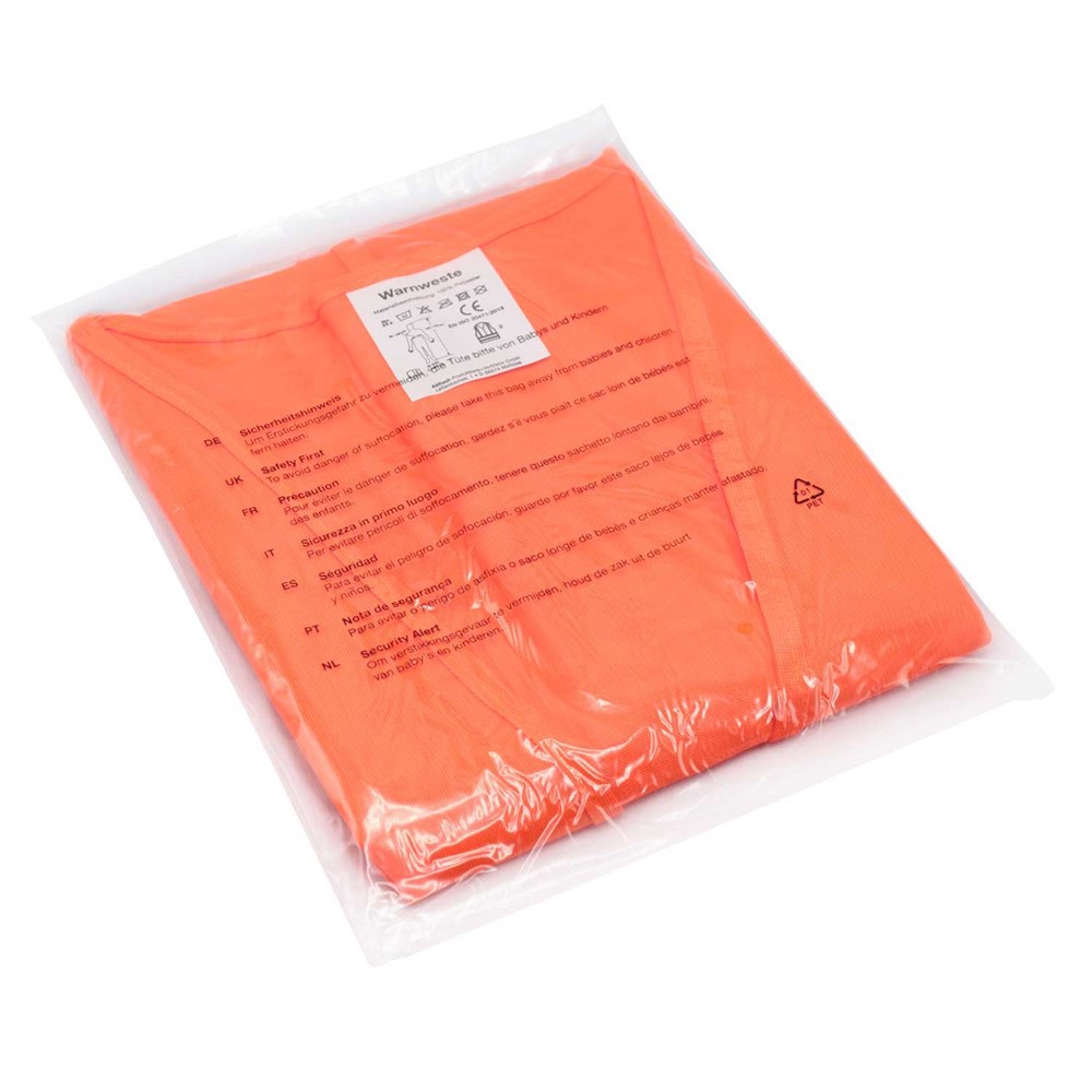 Unsere Warnweste Premium gelb ist aus 100% Polyester, wird nach EN ISO 20471 produziert und ist TÜV-Rheinland geprüft. Mit Anleitung einzeln im wiederverschließbaren Polybeutel verpackt. Durch die beiden Klettverschlüsse ist die Größe variabel einstellbar. Mit zwei reflektierenden Streifen, perfekt vernähte Qualität und Einleger in sieben Sprachen mit den gesetzlichen Pflichtangaben. Mit dem Standardmotiv 'Security Sicherheitsabstand' auf der Rückseite 1farbig schwarz bedruckt. Ein zusätzlicher Druck auf der Vorderseite ist möglich. Gern erstellen wir Ihnen dazu ein Angebot.
