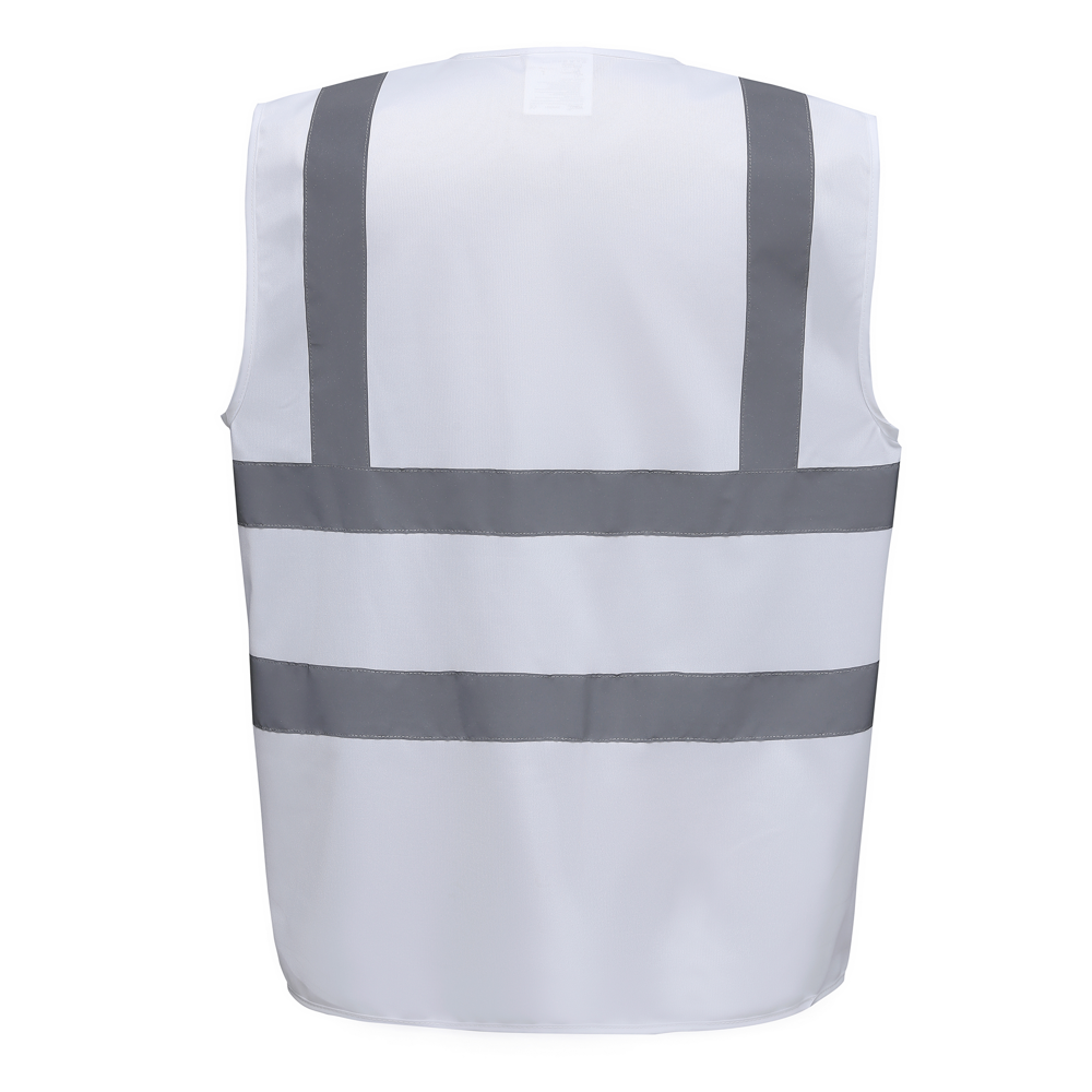 100% Polyester-Gewebe mit Klettverschluss. Zwei 5 cm breite Reflexstreifen um den Körper und einer über jeder Schulter. Hi-Vis Yellow, Hi Vis Orange, Orange/Hi Vis Yellow nach EN ISO20471: 2013 Klasse 2. Black/Hi Vis Yellow, Lime/Hi Vis Yellow, Navy/Hi Vis Yellow, Purple/Hi Vis Yellow, Paramedic Green/Hi Vis Yellow, Red/Hi Vis Yellow, Raspberry/Hi Vis Yellow, Royal Blue/Hi-Vis Yellow gemäß EN ISO20471: 2013 Klasse 1.