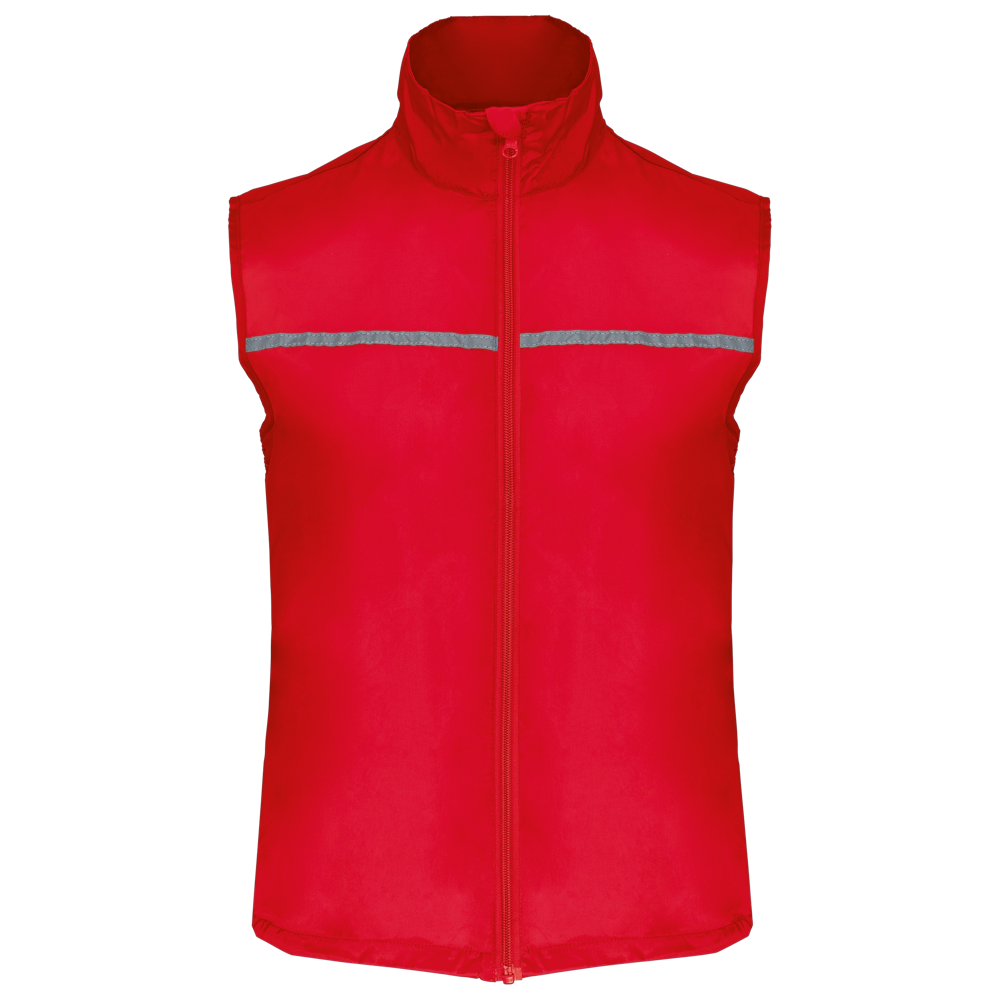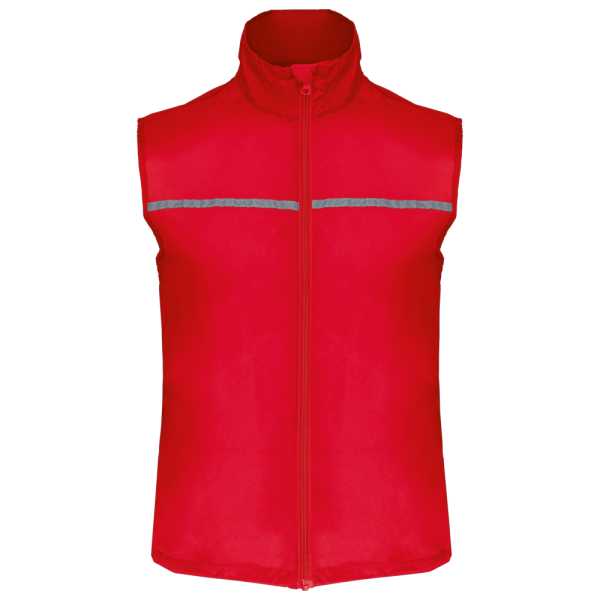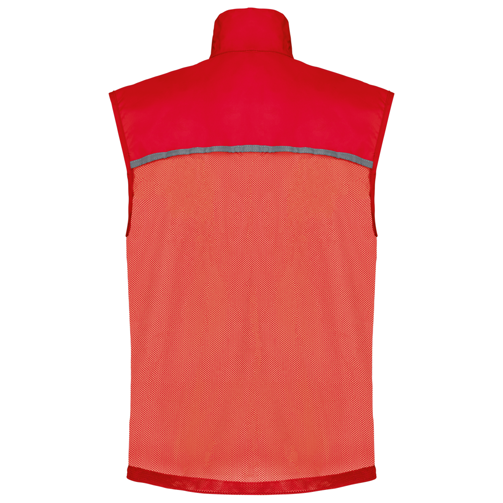 Winddicht aus 100% Polyamid. Rückenteil aus Netzstoff. Elastischer Kordelzug mit Stoppern am Bund. Reflektorstreifen vorne und hinten. Mehrzweck-Innentasche. Abmessung 9,5x11 cm.