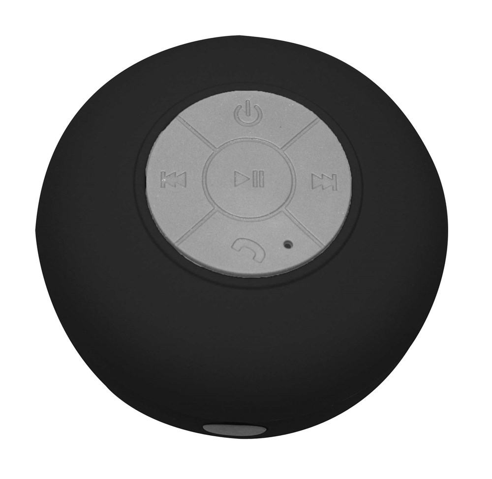 Wasserdichter Bluetooth-Lautsprecher mit praktischem Saugnapf. Format: 85 x 85 x 45 mm. Funktion: Bluetooth®-Lautsprecher, Freisprecheinrichtung. Farben: schwarz, weiß, grün, blau, pink. Leistung: 3 W, 400 mAh Akkukapazität. Inklusive: USB-Ladekabel und1c Druck an einer Position. Verpackung: Kartonage.