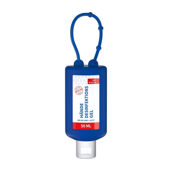 Hände-Desinfektionsgel (DIN EN 1500), 50 ml Bumper blau, Body Label (R-PET)